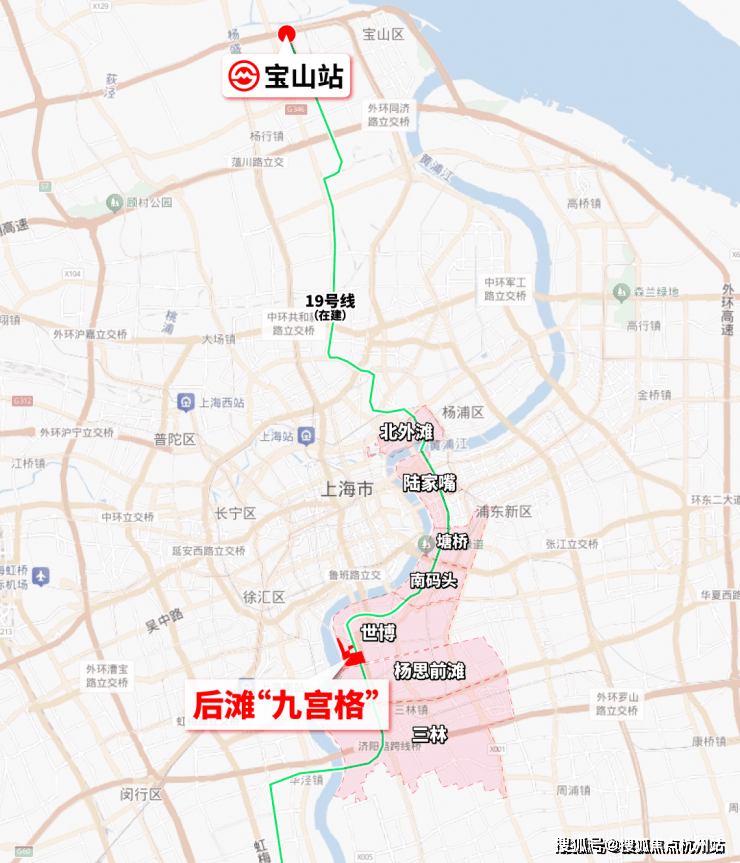 交通上方面:原有7号线后滩站,串联徐汇滨江、静安寺等核心商圈,但相对来讲,站点近后滩商办,离九宫格略远;但19号线的建设,真正打通了后滩任督二脉,不仅后滩站双轨交汇,还规划了德州路站,就在九宫格门口。