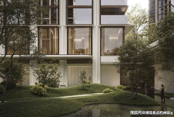 会所环绕着中心水苑展开,泳池、健身、瑜伽、私宴与茶室都被包裹在其中;连地下空间也被赋予自然的渗透,约30米面景的中央车站大厅,将光与绿意引入地库,让归家像步入一座埋入自然的殿堂。